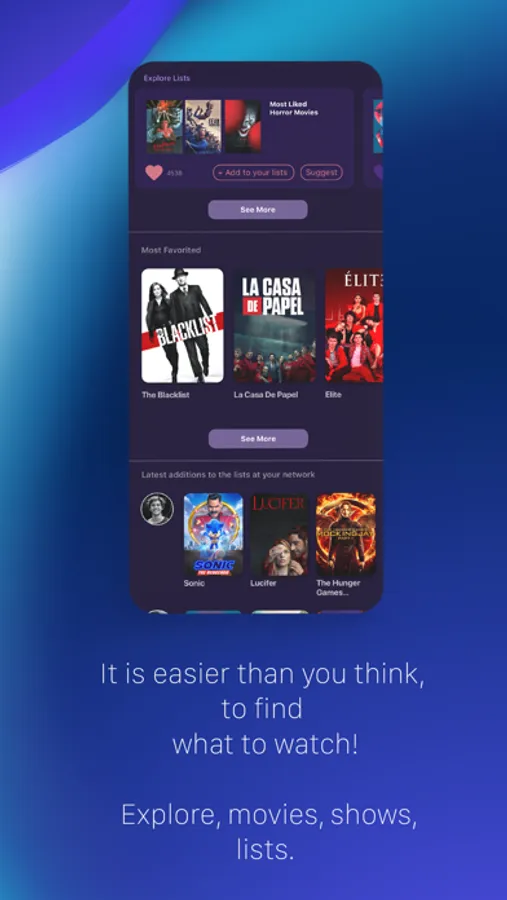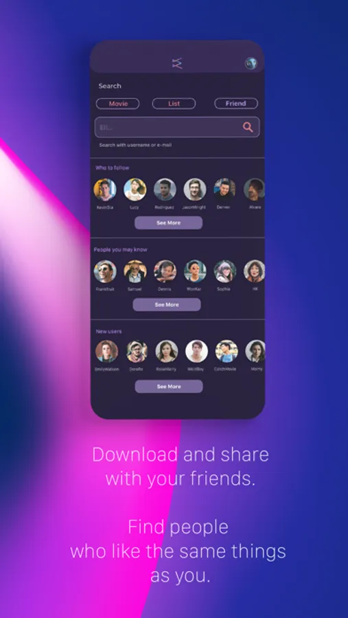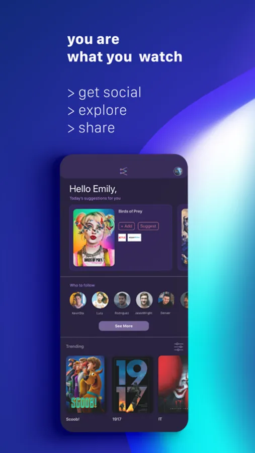 You can start socializing at once and complete your profile with what you watch and suggest.