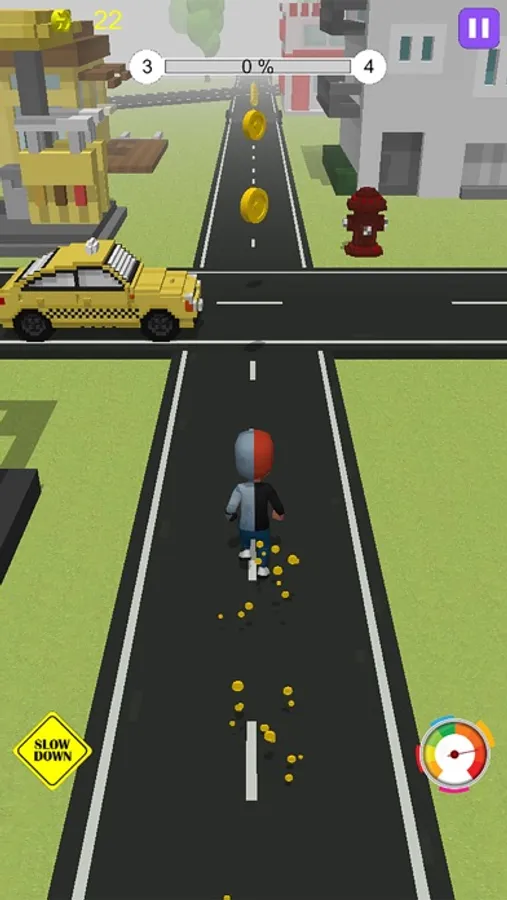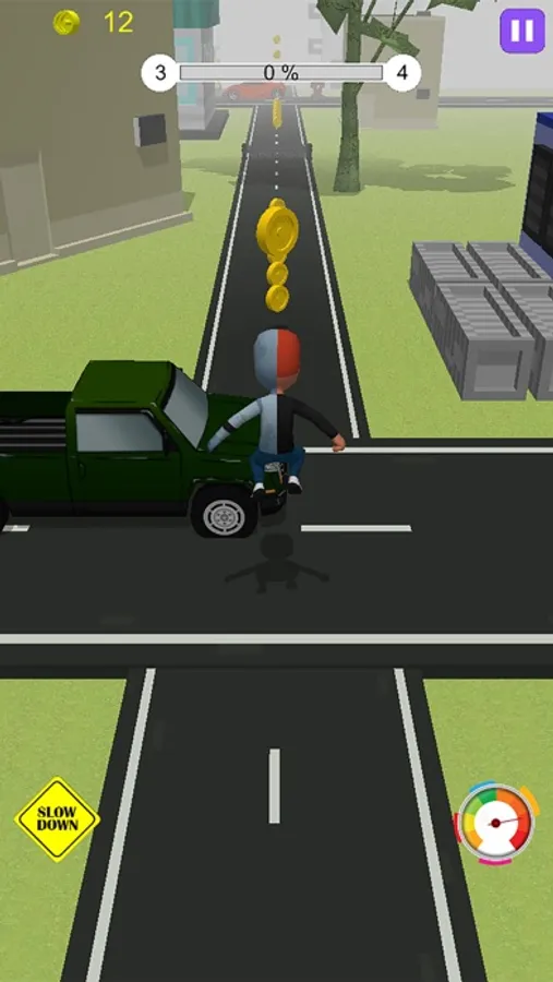 Help the runner Max to reach the finish line without crashing on barriers, moving cars and other obstacles. This is not a chase, it is a competition! Each level gets a bit more challenging, but fun to play!