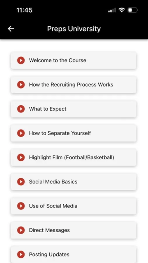 The app also includes the full video library for Preps University. Preps University contains valuable information that teaches athletes and families how to get recruited.