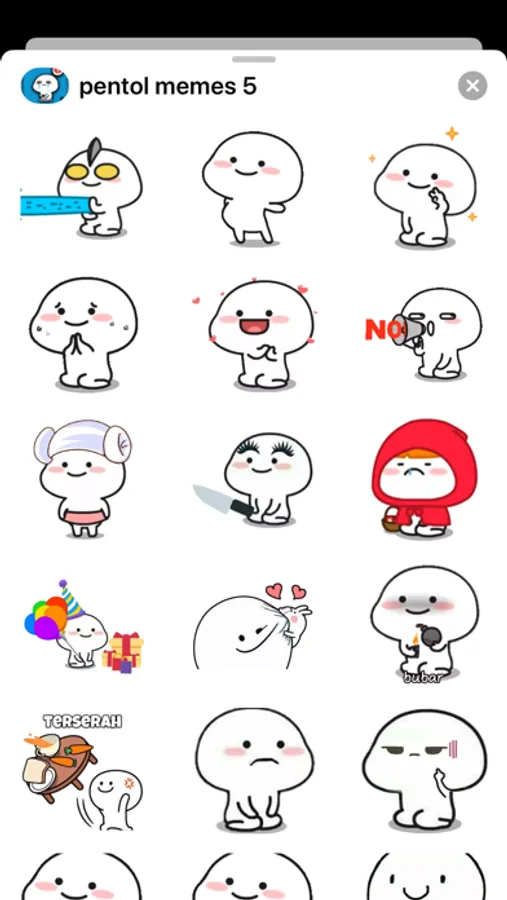 Meme Sticker Pentol Lucu For StickerApps ini terdapat varian Sticker Perang Meme , Sticker Pentol, Sticker Lucu, Sticker Meme Lucu, Meme Pentol yang kami munculkan pada imessage . Meme Sticker Pentol Lucu For StickerApps menyediakan banyak pilihan stiker menarik dan favorit.