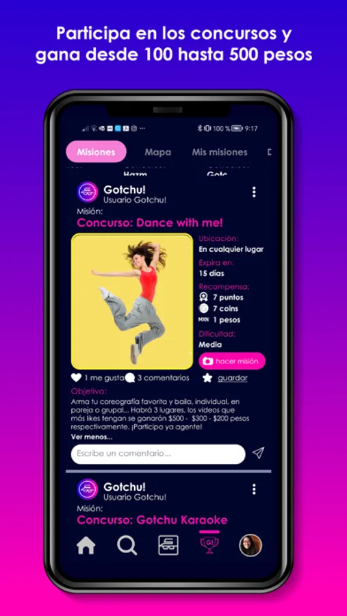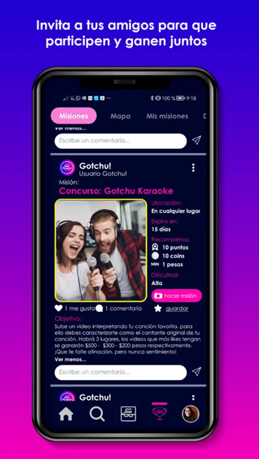 Con Gotchu! diviértete creando y haciendo misiones. ¡Puedes ganar dinero y recompensas!