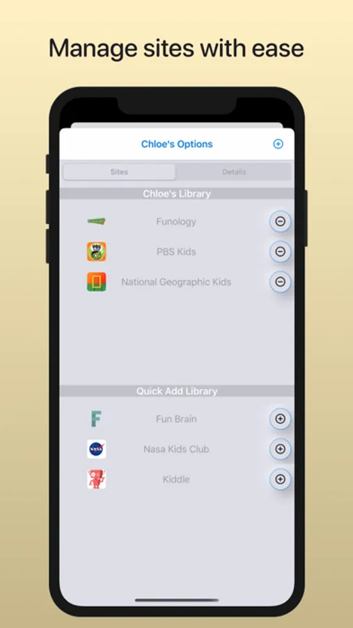 Add the sites you want your kids to see and everything else is blocked automatically. Navigation within the website is allowed but all links leading out are not.