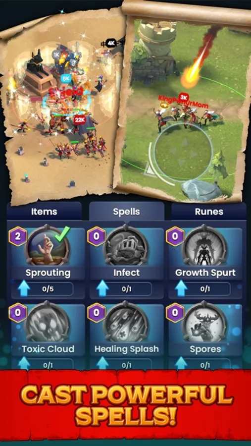 Every unit contains different attacks. Spells can turn the tides of battles. Battles will reward you with riches to upgrade your troops and spells. Collect as many as you can and you will become unstoppable.