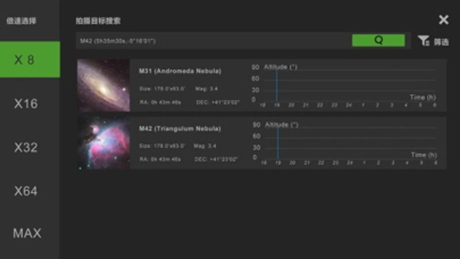 StarMaster提供赤道仪、天文相机、滤镜轮、电调焦等天文摄影设备的集成控制,通过手机即可实现精准GOTO、赤道仪自动校准、自动对焦、自动导星、计划任务拍摄,大幅降低天文望远镜操作门槛,让普通人也可以像专业天文爱好者一样获得前所未有的星空探索体验。