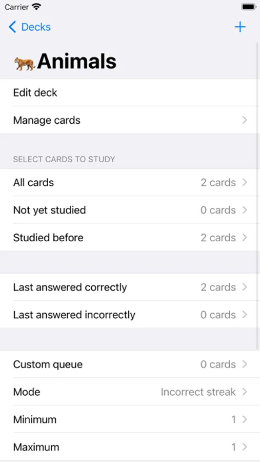 • Intelligent study modes (e.g. 'cards I last answered incorrectly')