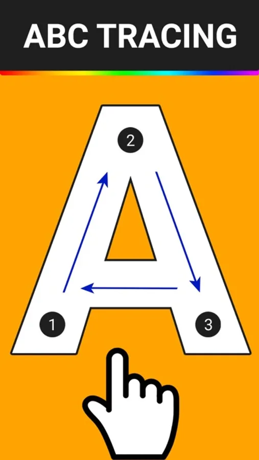 After that, you can select the letter or number you want to write. It will appear on the screen. On it, there will be arrows along which the child will need to draw a finger in the desired direction and the element will be drawn. The name of the letter will be spoken!