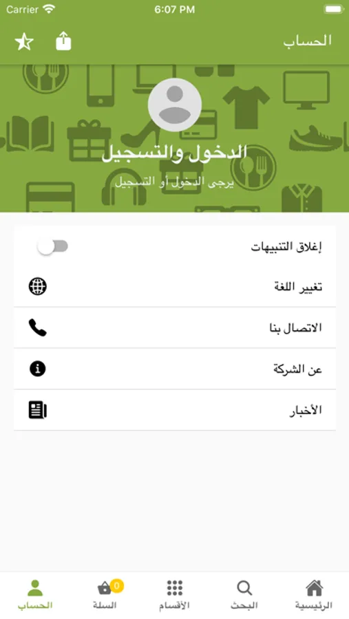 كما يمكن التسجيل في التطبيق لحفظ الطلبات السابقة وإضافة عناوين التوصيل