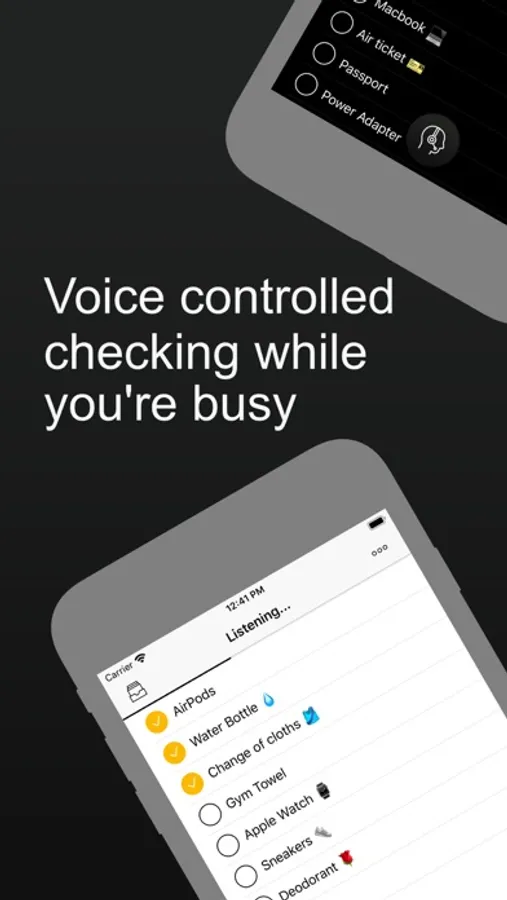 If you don't want to to hold your phone while packing, Go voice control.... ForgetNot® will read out the items in your checklist and you can say "Check" or "Skip"...
