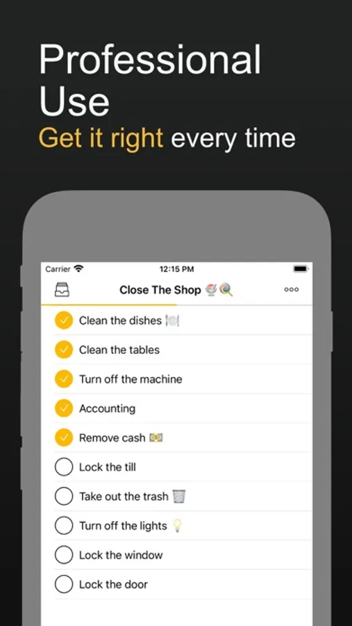 + Share as pdf: After checking a checklist, save to files or send it as pdf.