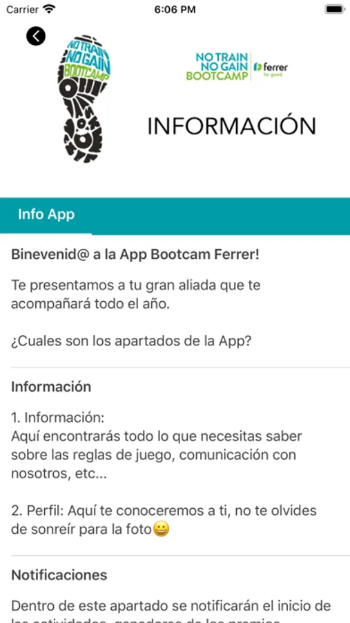 En esta App los usuarios podrán realizar formación gamificada relacionada con el evento Bootcamp Ferrer. También los usuarios podrán comunicar entre ellos, escribir sus dudas y contestar a las preguntas.