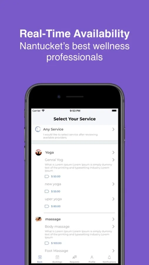 Nantucket's "Open Table" for wellness services. Discover and maintain your healthy lifestyle with the real-time availability and book-ability of Nantucket's wellness experts. Nantucket's wellness professionals post the services they offer and synch their schedules to the app. Clients are able to see the real time availability of services and request appointments with the island's talented wellness experts.