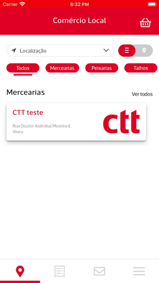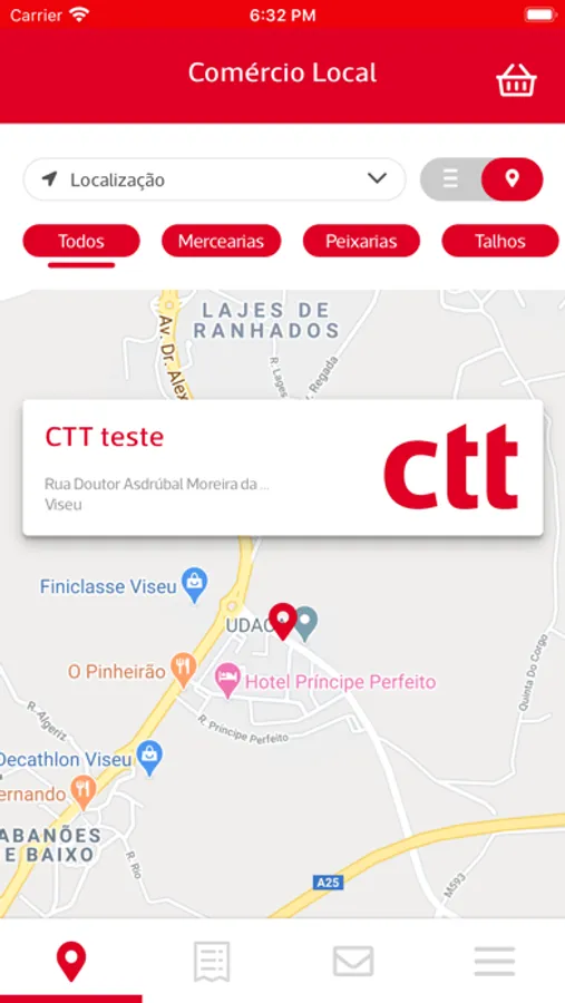 2. Veja no mapa os comerciantes disponíveis, por proximidade, e navegue na sua lista de produtos;