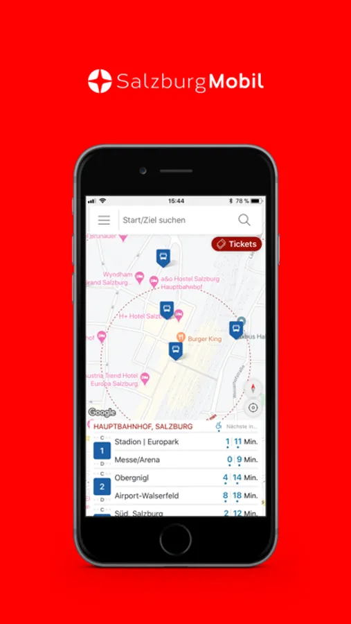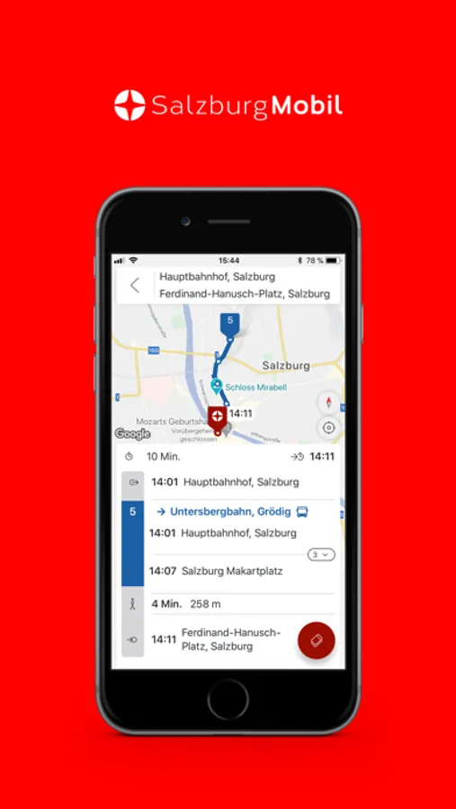 The SalzburgMobil app is the perfect trip assistant as you travel through Salzburg on public transportation. Get up-to-the-minute updates on scheduled departure times with integrated real-time information, receive bulletins about current service restrictions and disruptions, let our route planner show you the fastest route to your destination, and buy your ticket conveniently and simply right there on your smartphone.