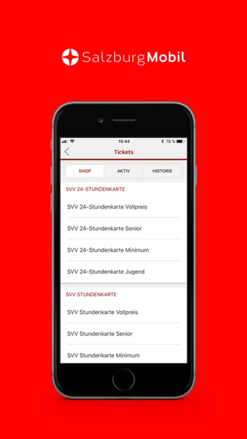 With the SalzburgMobil app, you can conveniently buy tickets using your smartphone, regardless of whether you are still at home or have already left. Before you can buy tickets, you must register using the app. You may buy the following types of tickets: