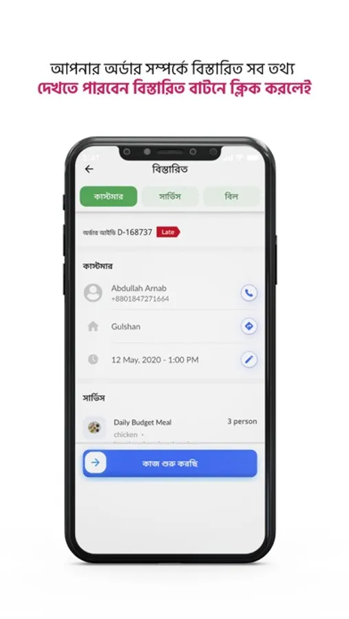 Just simply log in to start the app, watch out the full details of customers and their services. If you have any questions, call the customer’s no. Start your service, if it remains unfinished or pending click on pause. After your job is finished, click finish and collect your earning amount.