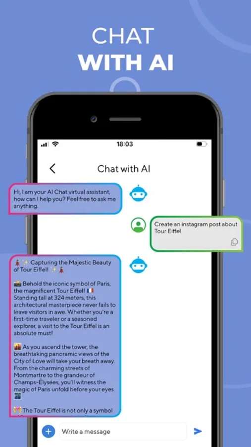 Chat AI: A key feature of Lens AI, our AI chat integrated into the camera, allows for generating detailed responses by leveraging ChatGPT. Delve deeper into the world you see in real time and with an unprecedented level of precision.