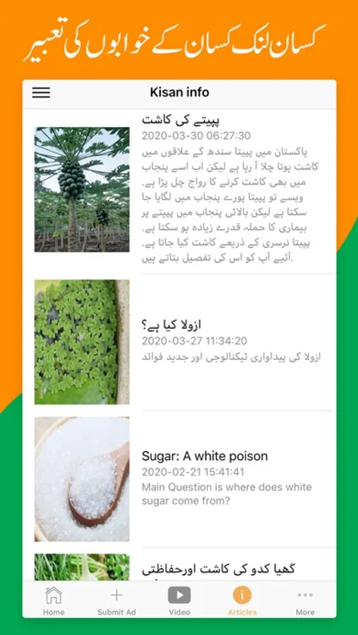 کسان ذراعت اور مویشیوں سے متعلق سوال پوچھ سکتے ہیں اور اہم مضامین پڑھ سکتے ہیں۔