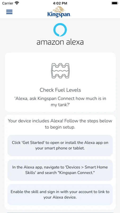 • Connect the app to Alexa and ask questions such as "How much is in my tank?" or "When will I run out of oil?"