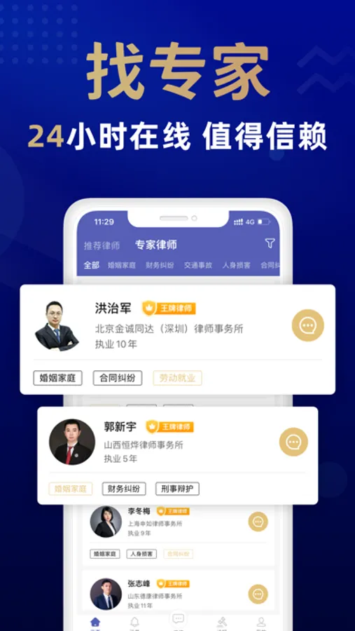【全程指导】一键@专家律师,婚姻问题、劳动争议、合同纠纷、股权纠纷、交通问题等各类问题,线上or线下,多重选择,大牌专家律师零距离,助您摆脱法律问题困扰;