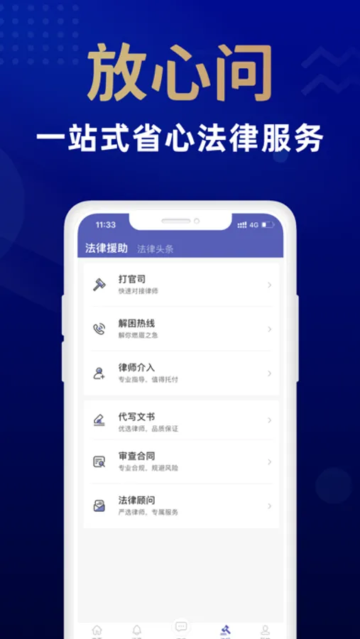 ——由大牌律所执业律师牵头,汇聚资深婚姻家庭、债权债务、合同审查、交通事故、金融股权、建筑工程等全领域资深执业律师,为您提供一站式法律咨询服务。帮您解决婚姻家事财产纠纷、劳动就业不公正待遇、投资理财风险防控、开办公司股权架构等一系列法律问题,让您足不出户,随时随地咨询正规专业律师,线上线下结合,让法律服务触手可及,为您的人生保驾护航!