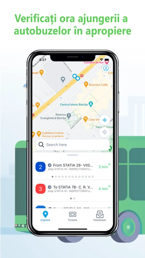 “TMX Transport Bistrita” ghideaza calatorul la o destinatie aleasa din orice punct al orasului in cel mai facil si rapid mod. Putem obtine instrucţiuni de călătorie pas cu pas pentru rutele optime de autobuz, bicicletă sau o combinaţie a acestora.