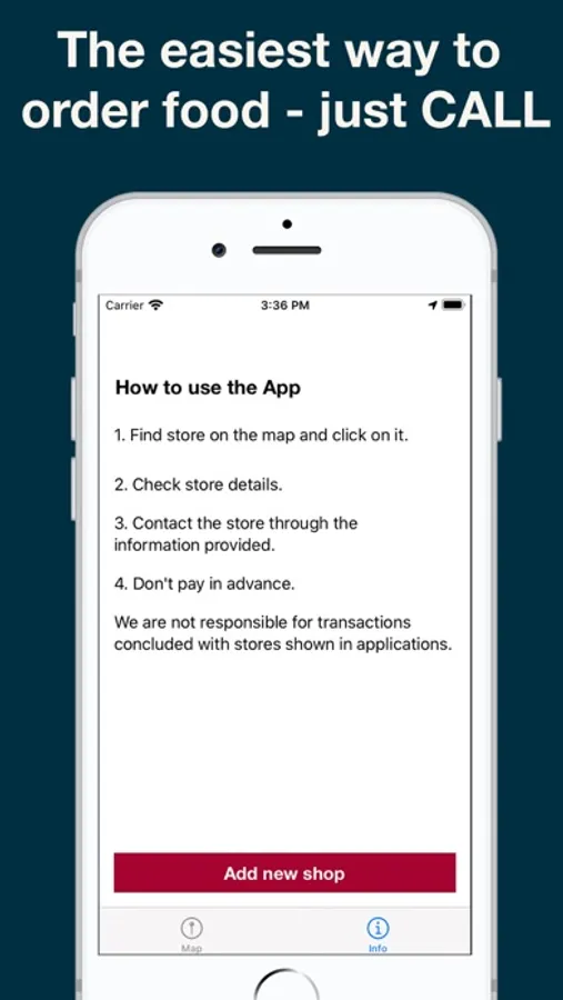 Choose your supermarket from the map, contact and order food with no more stress, traffic or queues.