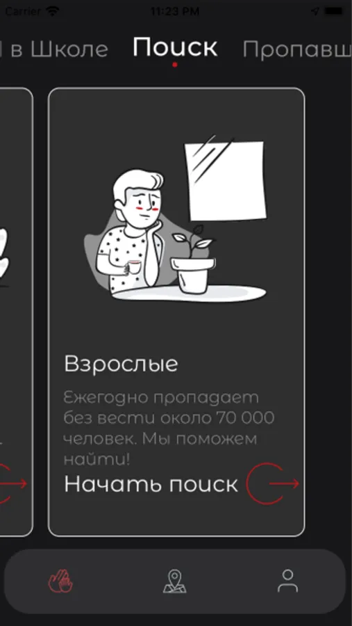Мы представляем первую версию мобильного приложения проекта по поиску детей здесь и сейчас. Проект включает в себя ряд социальных продуктов касательно детей и животных, киднеппинга, Интернет Систему Оповещений о чрезвычайных ситуациях от соответствующих служб и ведомств, систему помощи в один клик в разделе «Я помогаю».