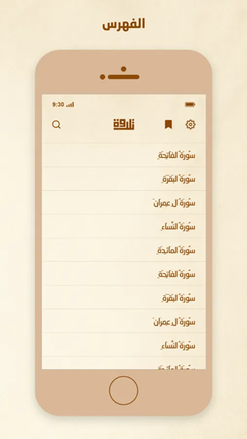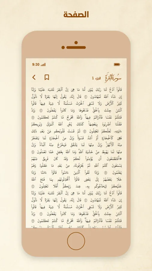 القران الكريم كاملاً وهو مطابق تماماً للمصحف الورقي وبخط واضح و لون خلفية الصفحات مريح للعين