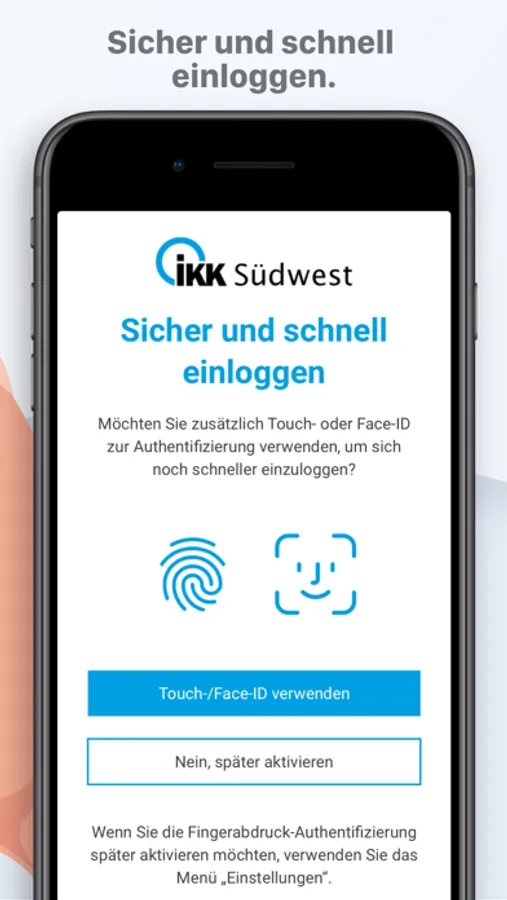 Für den Zugang zur App verwenden Sie einfach die gleichen Login-Daten wie für unsere Online-Geschäftsstelle „Meine IKK Südwest“.