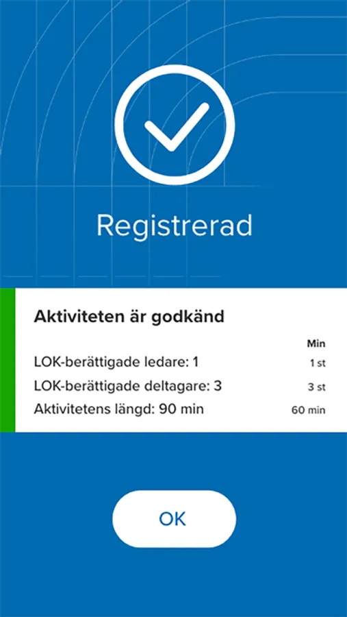 Denna app är för dig som är ledare av aktiviteter (träning och tävling) för barn och ungdomar i din idrottsförening. Med appen kan du snabbt och enkelt registrera vilka som närvarade på aktiviteten. Samtidigt säkerställer du att alla deltagare räknas in i din idrottsförenings LOK-ansökan.