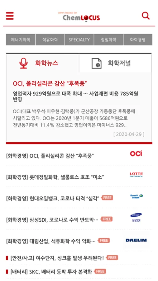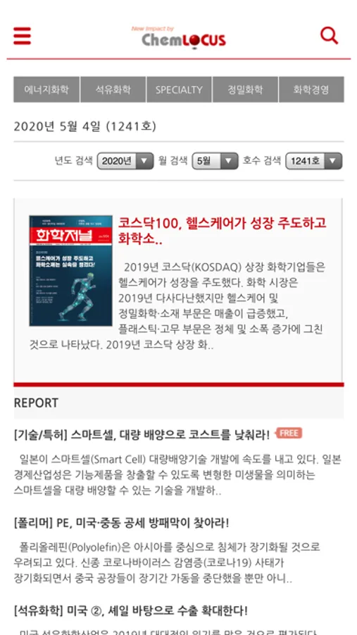 · 최신 화학뉴스와 심층적인 화학저널로 정보가 구분되어 제공됩니다.