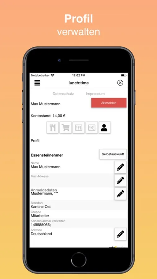 Mit unserer App lunch:time haben Sie den Zugriff auf Ihr Gästeportal MIN-TEC® immer dabei. Sie können nach Herzenslust im Speiseplan stöbern und gleich Ihre Auswahl problemlos bestellen. Sollte Ihr Guthaben für den Kauf nicht ausreichen, ist auf Tastendruck eine schnelle Aufladung mittels Ihres präferierten Dienstleisters durchgeführt. Zur Verfügung stehen hier die sicheren und bewährten Methoden wie paydirekt, Kreditkarten, PayPal, Lastschrift und per Überweisung.