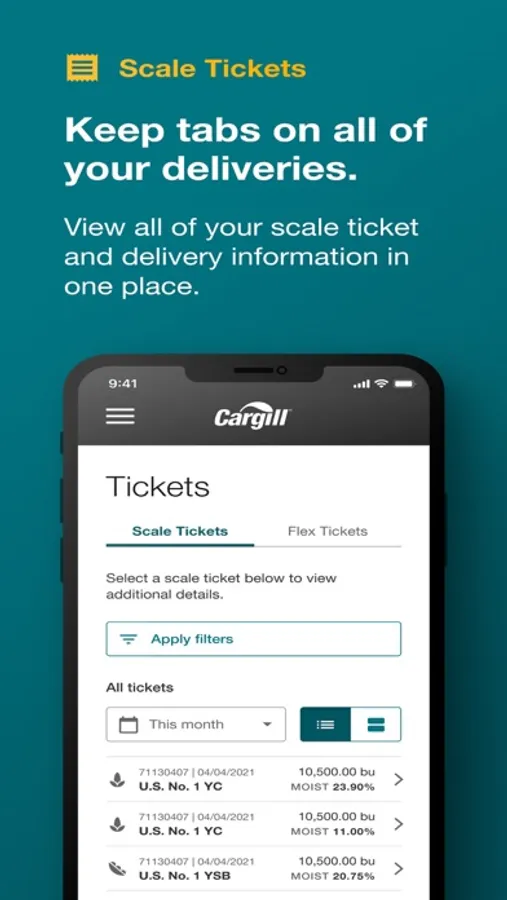 Stay up-to-date with your deliveries and view all of your scale ticket information, or upload delivery tickets from any non-Cargill location.