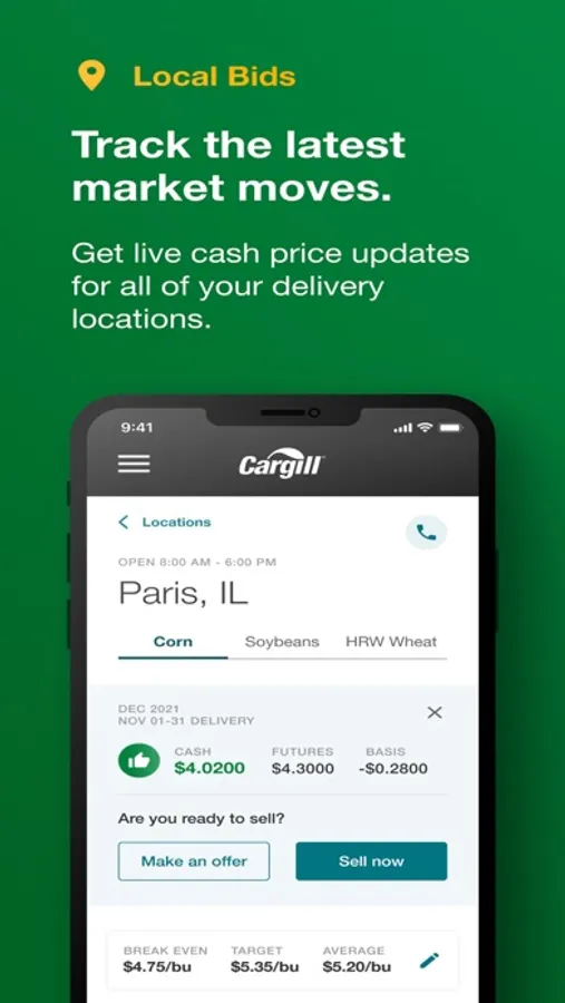 The CargillAg app gives you live cash price updates for your saved delivery locations so you never miss a price change or facility update.