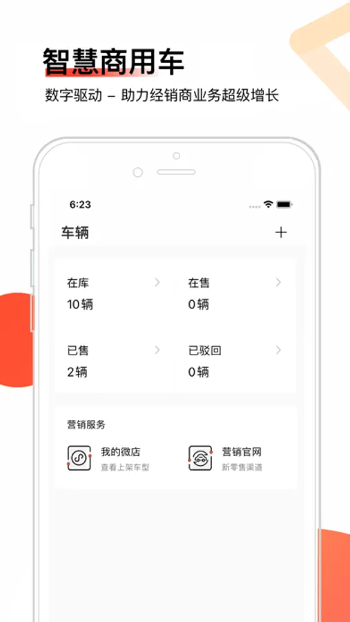智慧商用车是丰车(上海)信息技术有限公司为经营商用车的合作伙伴提供的的商用车智慧数字化管理营销平台。简单、高效、快捷贯穿于整个APP,是商用车领域不可多得的经营管理工具,我们用全新的方式,将智慧商用车移动APP管理理念融入到您的业务流程当中去。