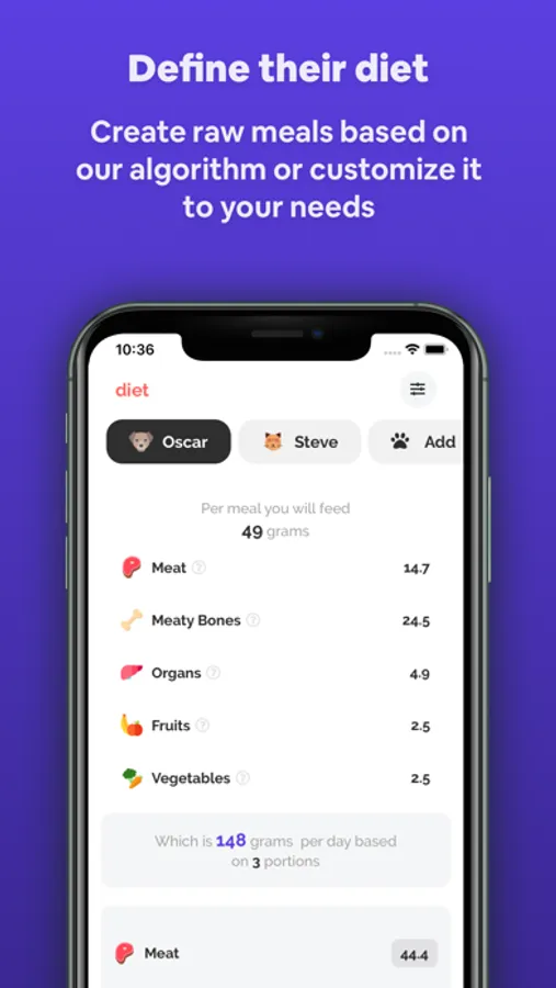 Chomp makes it easy for raw feeders worldwide to track their loved ones' (dogs, cats and ferrets!) food intake. Add treats, set a journal of your pet diet, and create and customize meals.