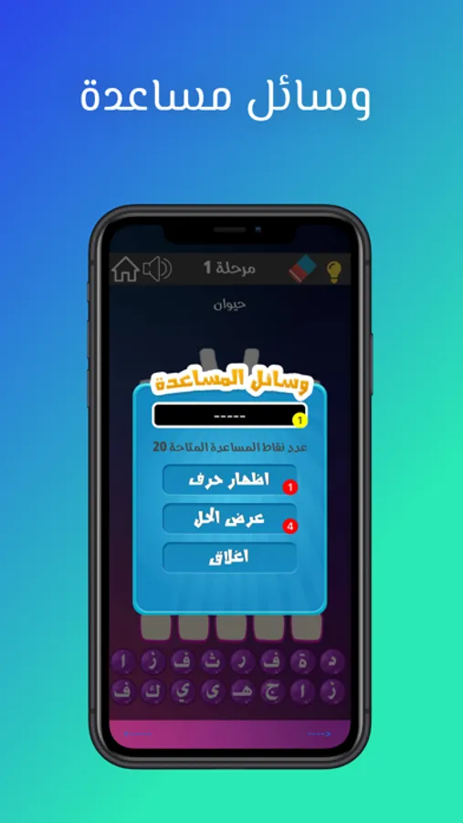 توجد وسائل مساعدة متعددة منها اظهار تلميحات تقودك الي الاجابة الصحيحة او أعطاءك الاجابة نفسها كما سيظهر امامك عدد الكلمات المطلوبة للحل وطول كل كلمة لمساعدتك في الوصول الي الاجابة الصحيحة
