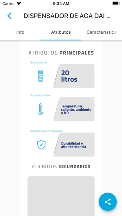 Para generar un PDF de un producto presionar el botón compartir en el detalle del mismo.
