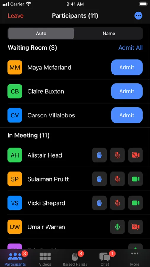 • Always Admit: optionally choose to always admit specific names into your meeting