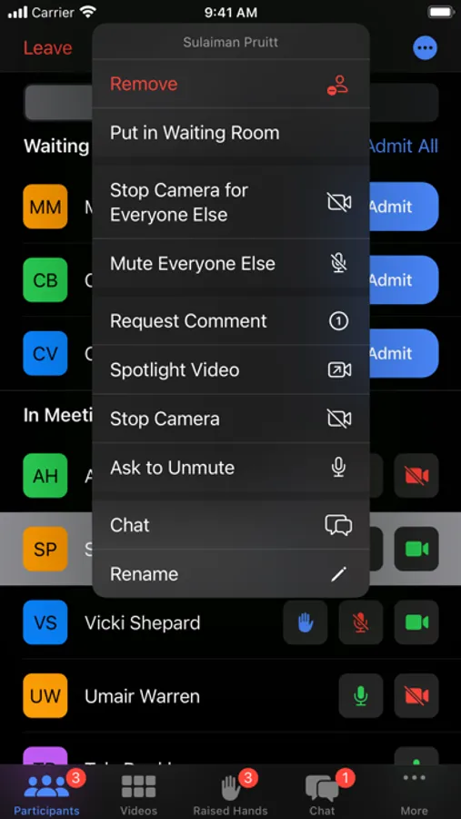 Take control of your meetings with Attendant for Zoom. Easily manage audio/video, counts, raised hands, breakout rooms, chats, and your waiting room. Use Attendant as host/co-host while connected to a Zoom meeting from another device. Tap into these useful automations: