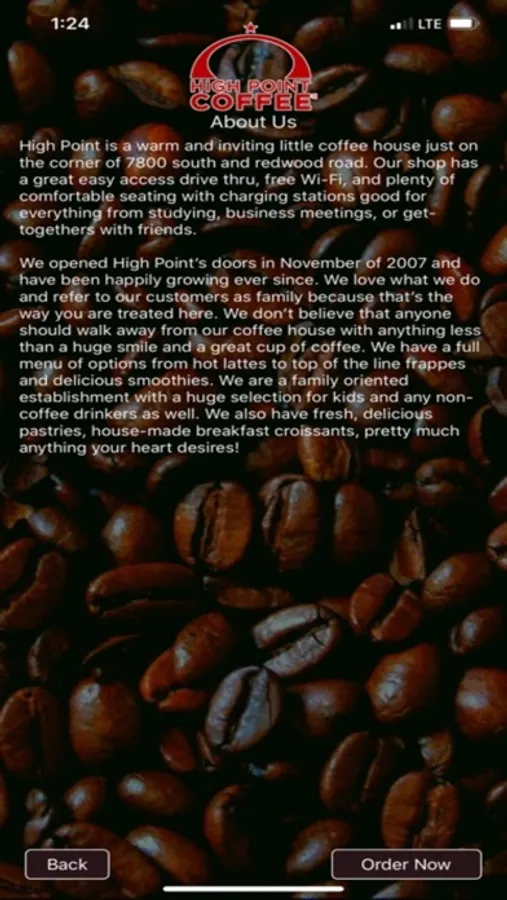 We opened High Point’s doors in November of 2007 and have been happily growing ever since. We love what we do and refer to our customers as family because that’s the way you are treated here. We don’t believe that anyone should walk away from our coffee house with anything less than a huge smile and a great cup of coffee. We have a full menu of options from hot lattes to top of the line frappes and delicious smoothies. We are a family oriented establishment with a huge selection for kids and any non-coffee drinkers as well. We also have fresh, delicious pastries, house-made breakfast croissants, pretty much anything your heart desires!