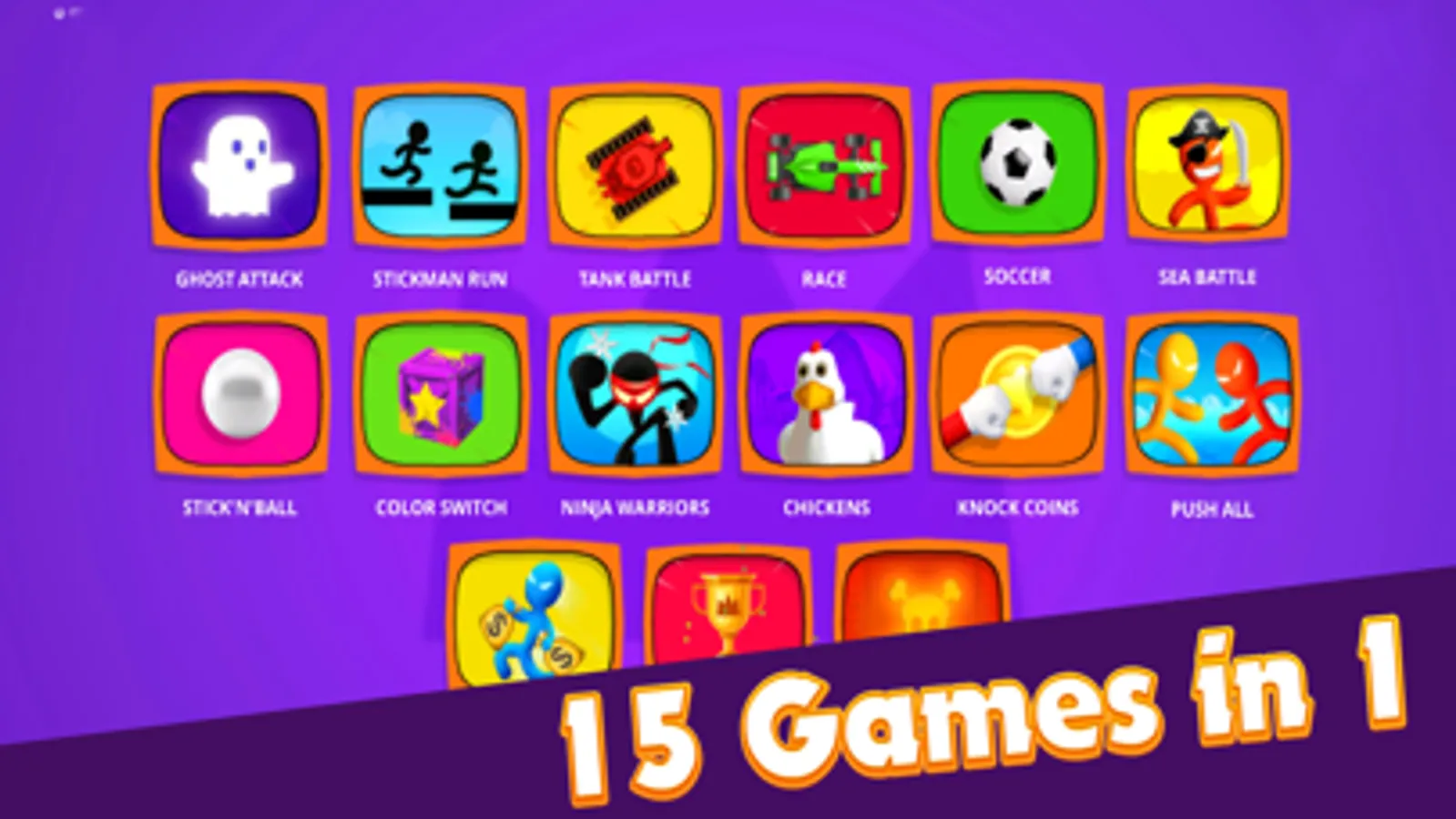 • 15 different games
