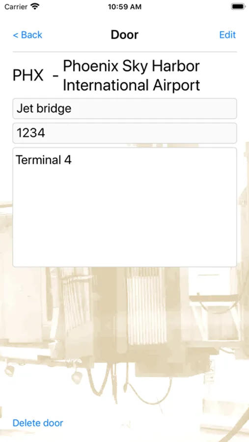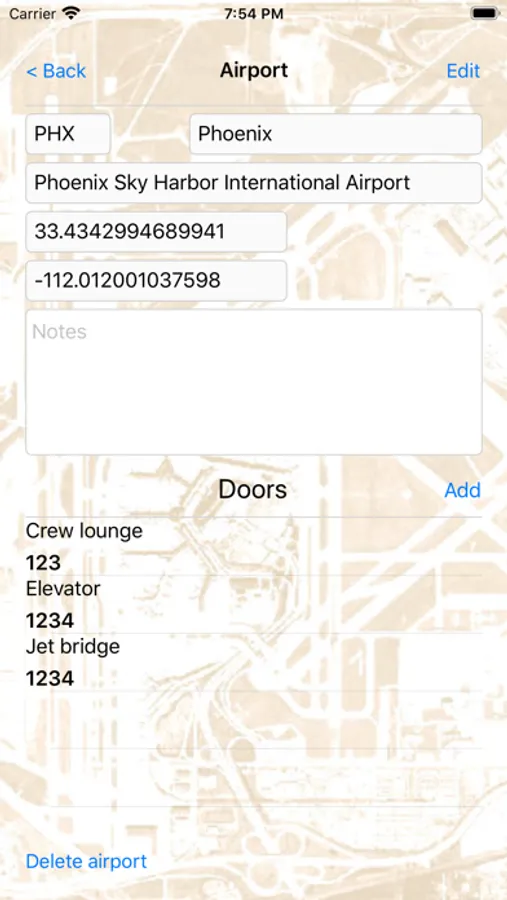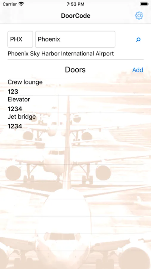 DoorCode Airports allows you to store all your sensitive access codes securely in a single place and automatically display the ones closest to your location when you start the app. It is designed for flight crews who deal with jet bridge, elevator and crew lounge access codes on a daily basis.