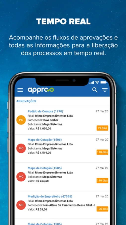 Transparência e rapidez na comunicação entre a operação e os aprovadores da sua empresa.