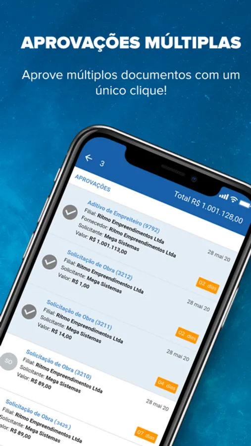Acompanhe os fluxos de aprovações e todas as informações para a liberação dos processos em tempo real.