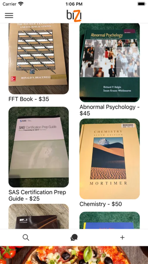 TheBiziApp allows college students to sell their books, furniture, electronics, or other items to each other.