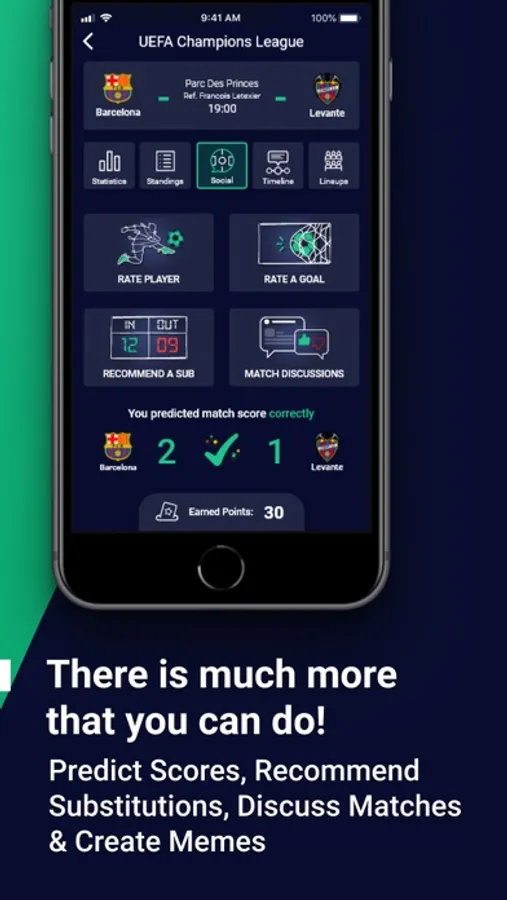 Get more points and win valuable prizes by predicting scores, answering trivia questions, and rating players and goals.
