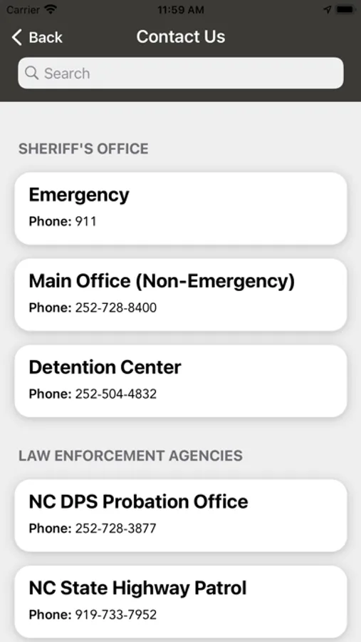 The Carteret County Sheriff’s Office mobile application is an interactive app developed to help improve communication with area residents. The Carteret County Sheriff App allows residents to connect with the Carteret County Sheriff’s Office by reporting crimes, submitting tips, and other interactive features, as well as providing the community the latest public safety news and information.