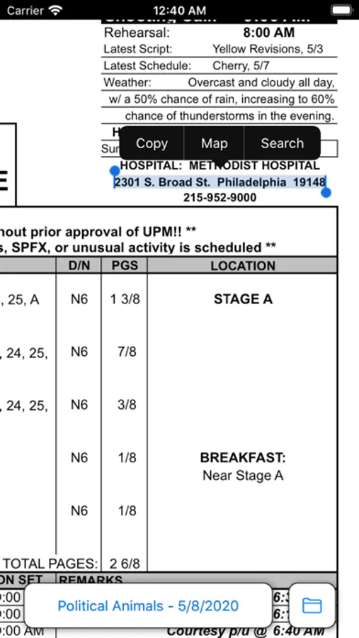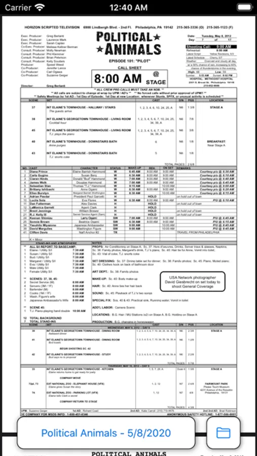 Open Callsheet provides single button callsheet access for fast and easy on-the-go reference to all of the information for the day.