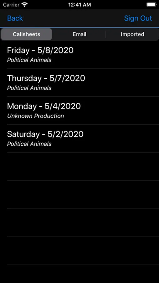 Callsheet detection can search your email automatically or PDFs can be imported manually